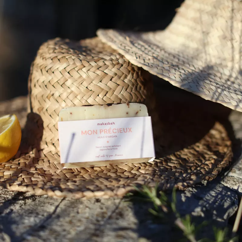 Découvrez Mon Précieux, le savon exfoliant artisanal signé Makasbah, pensé pour apporter éclat, douceur et nutrition à votre peau.
